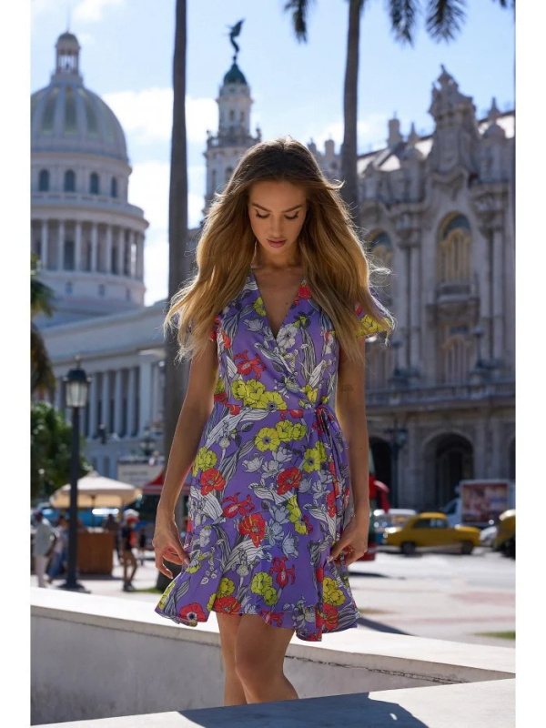 M738 Zavinovací šaty s potiskem a zavazováním - model 1 EU XL