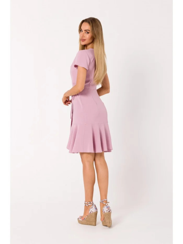 M741 Zavinovací šaty s vázáním - krepové růžové EU L