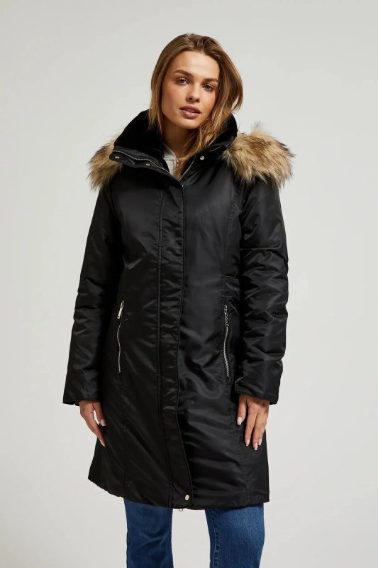 Dámská bunda s kožešinovou kapucí MOODO - černá Velikost: XL