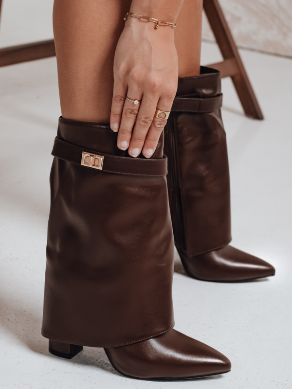 Dámské hnědé kozačky na podpatku