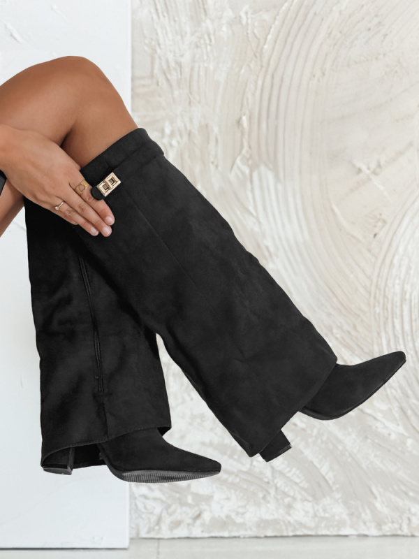 Černé semišové holínky bez podpatku