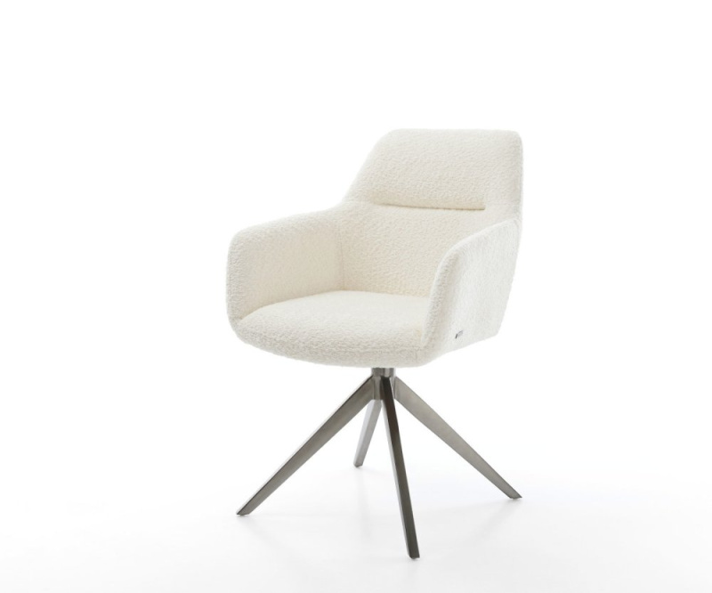 Otočná židle Abelia-Flex s područkami Bouclé bílá Křížový rám široký