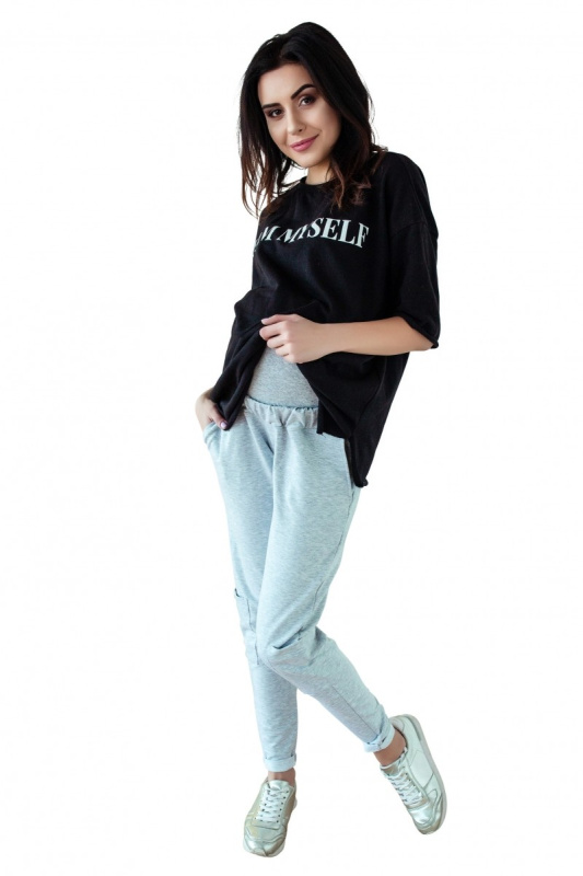 Moderní těhotenské tepláky s odnimatelným pásem - grafit, vel. S