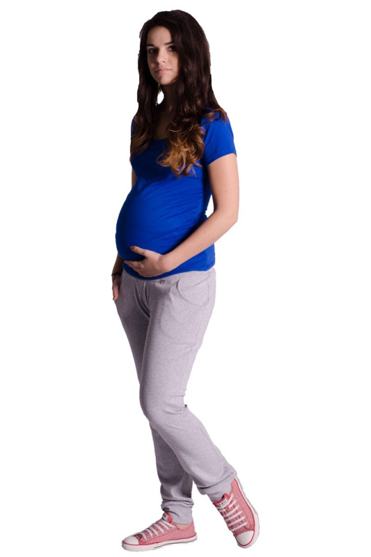Těhotenské tepláky/kalhoty slim - šedý melírek