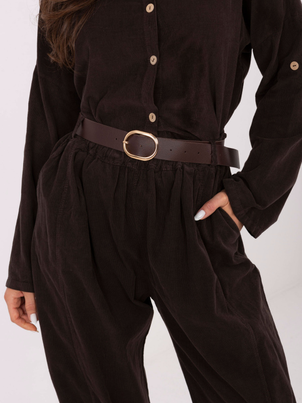 Tmavě hnědé kalhoty s páskem