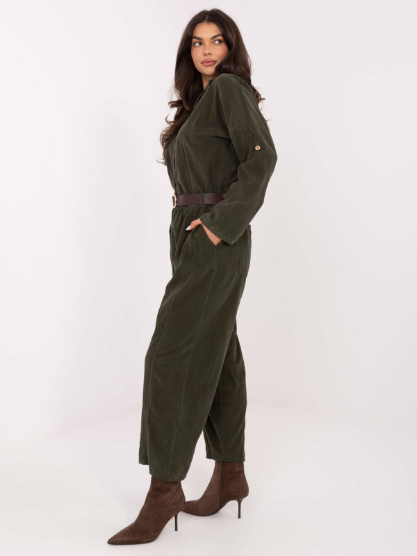 Dlouhý overal v tmavé khaki barvě
