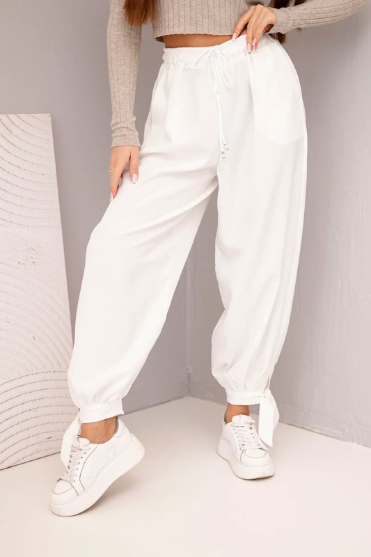 Bílé kalhoty s vázáním na spodku