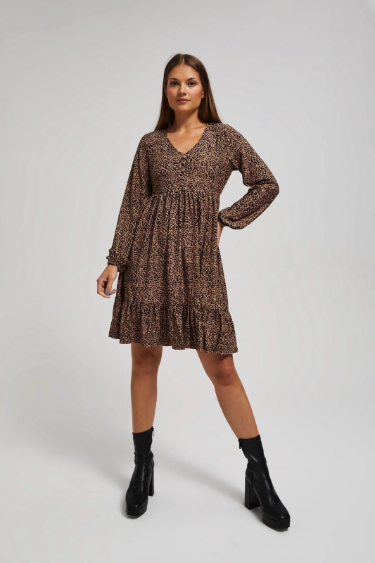 Vzorované šaty s volánky.Velikost: XS