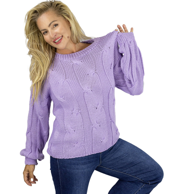 Pri Fluffy Women's Braided Sweater Buffed Sleeves AMELIA