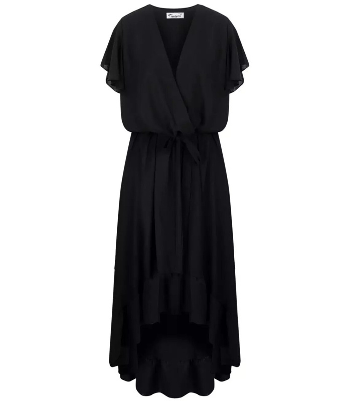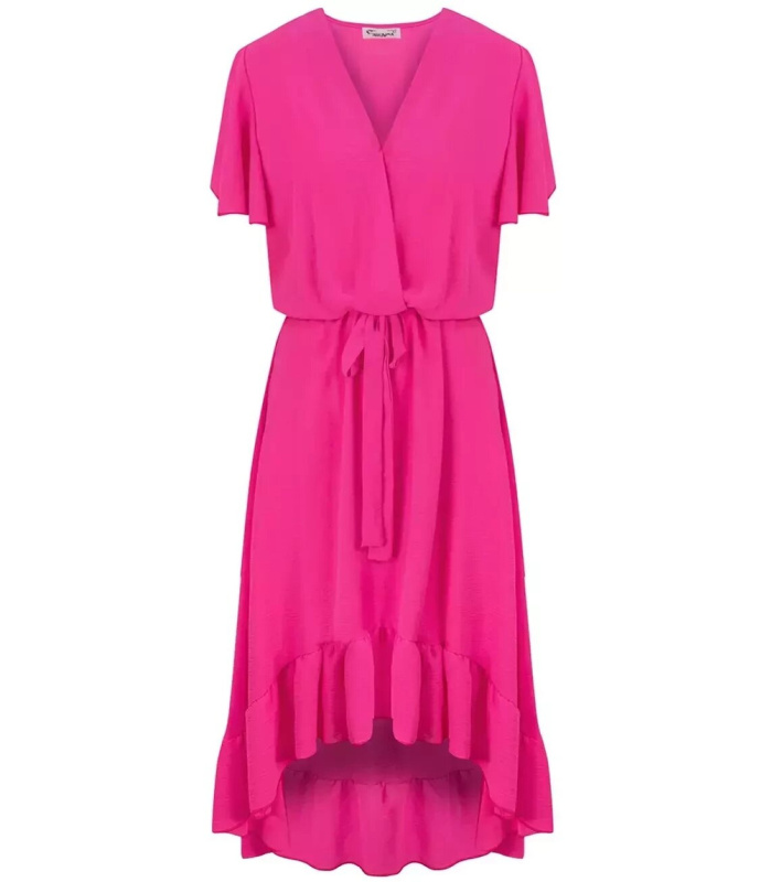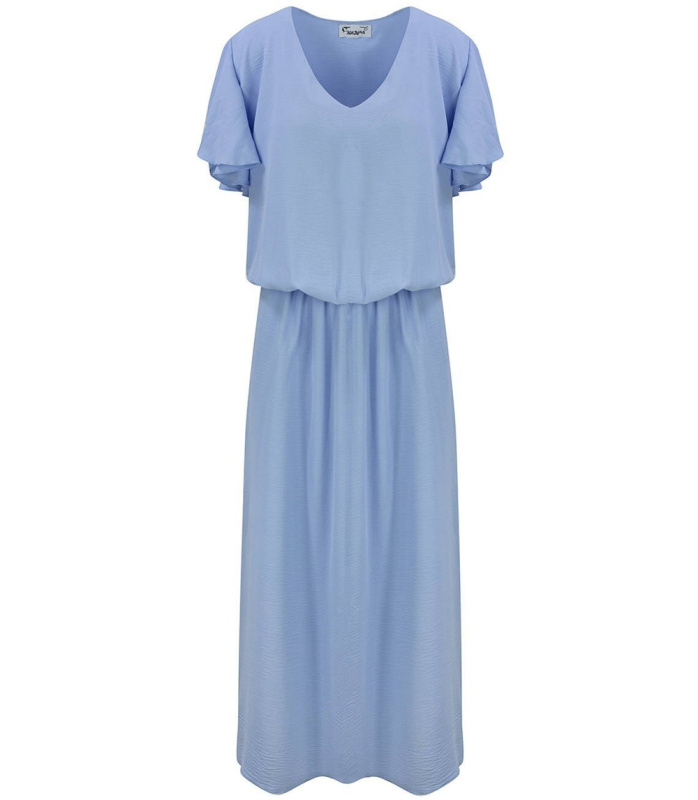 Pri Long dress tied at the waist with short sleeves with frill CELINA