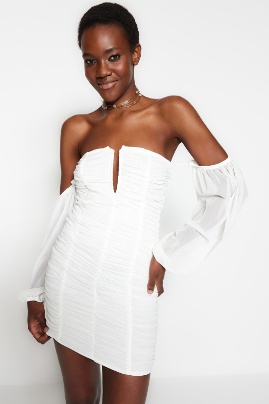 Trendyol Ecru vypasované tkané svatební večerní šaty