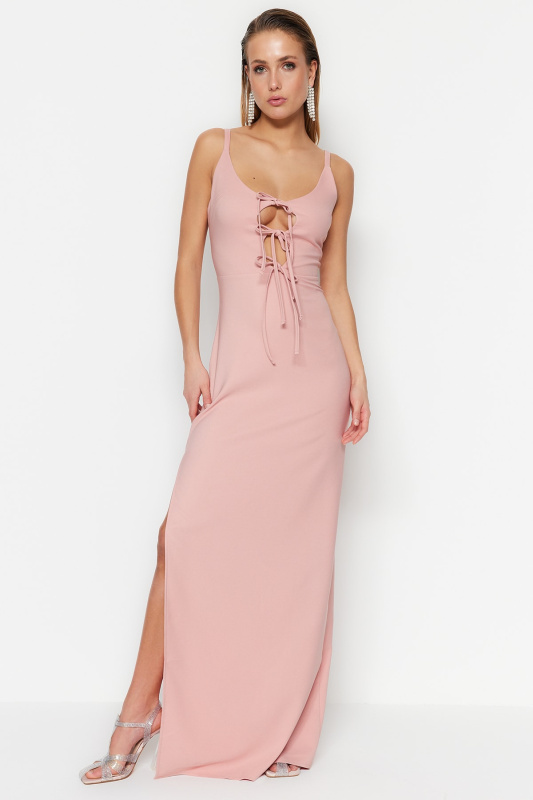 Dlouhé večerní šaty Trendyol s práškovou vazbou s lemováním