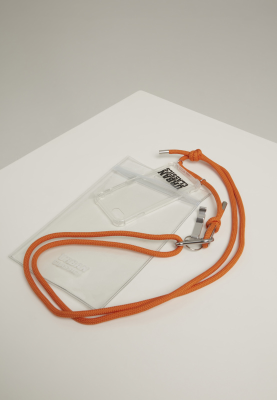 Náhrdelník na telefon s doplňky I Phone 8 průhledný/oranžový