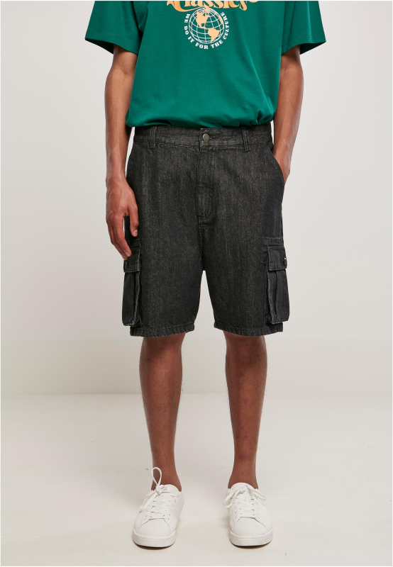 Organic Denim Cargo Shorts černé seprané
