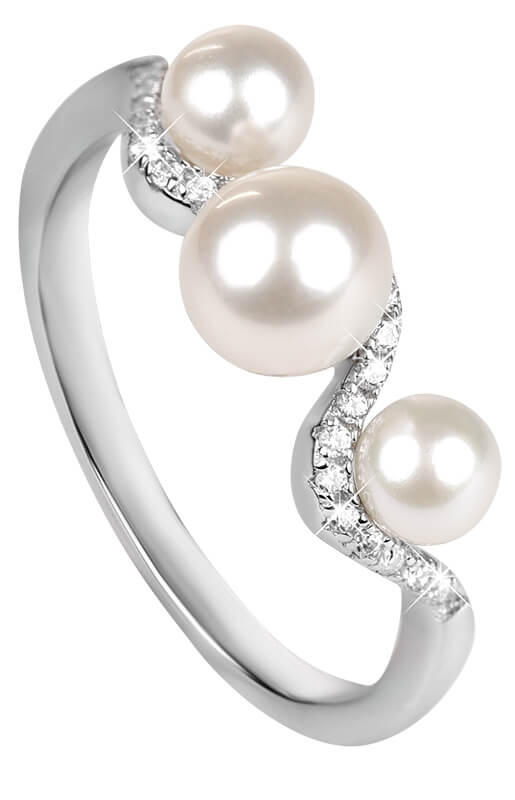 Silver Cat Stříbrný prsten se zirkony a perlou SC339 56 mm