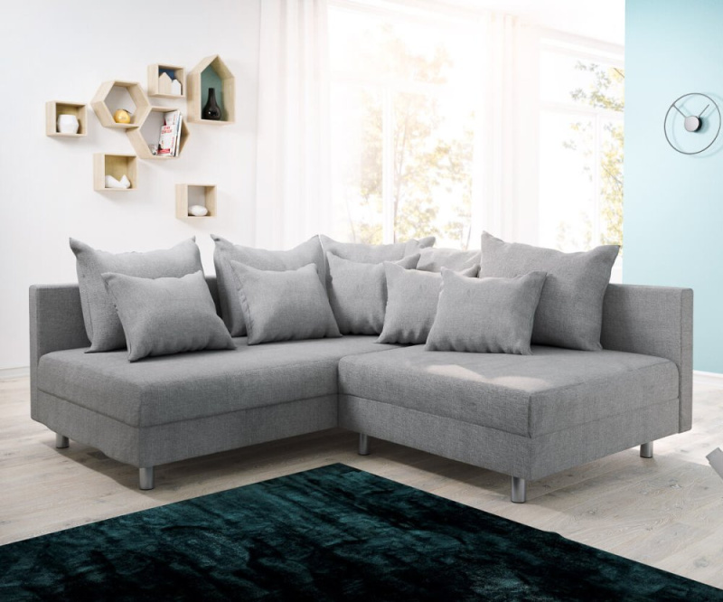 Rohová pohovka Clovis šedá plochá tkanina lenoška levá modulární