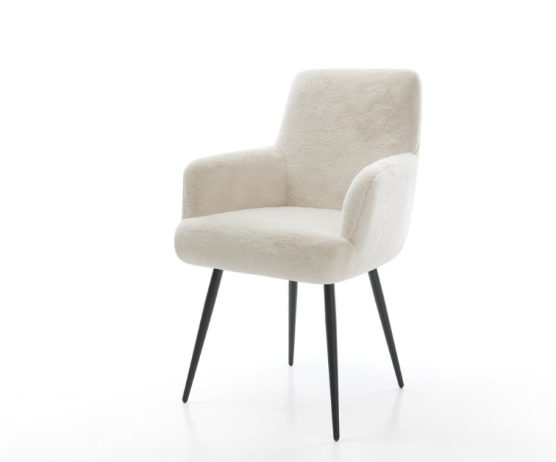 Jídelní židle Heira-Flex s područkami plyšový manšestr krémovo-bílá