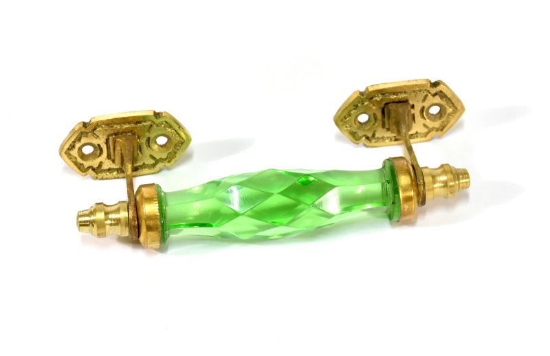 Sanu Babu Skleněná úchytka na šuplík, kovové zdobení, zelená, 17x6cm