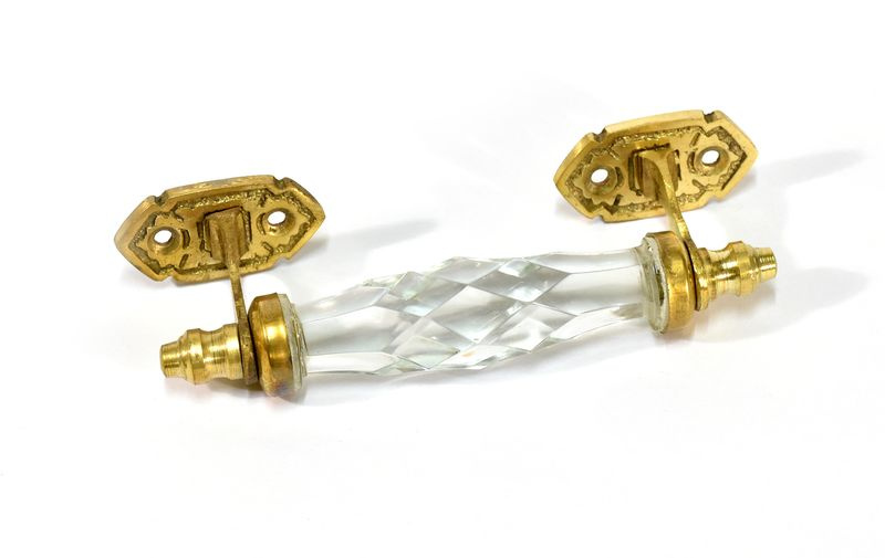 Sanu Babu Skleněná úchytka na šuplík, kovové zdobení, průhledná, 17x6cm
