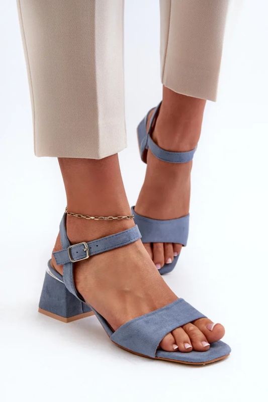 Dámské sandály na eko semišovém bloku, modrá Leisha 37