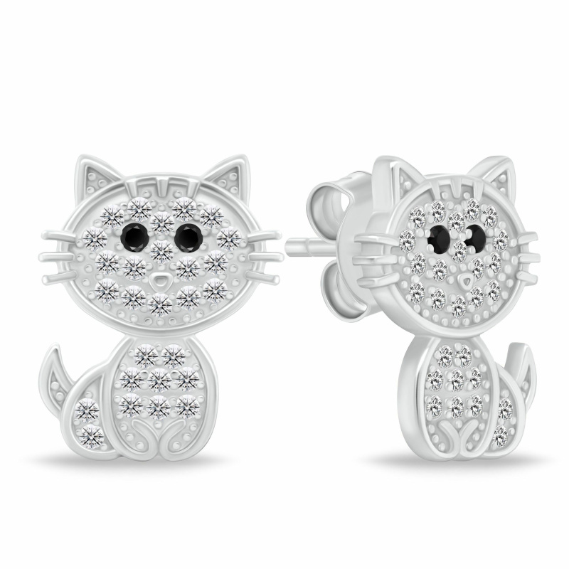 Brilio Silver Roztomilé stříbrné náušnice Kočička se zirkony EA1062W