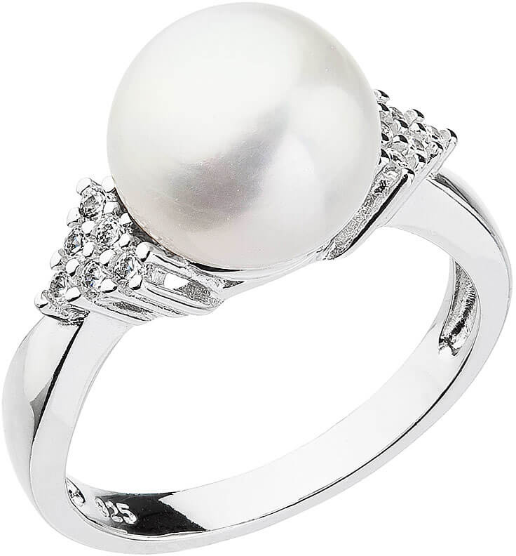 Evolution Group - Pavona Stříbrný prsten s bílou říční perlou a zirkony 25002.1 58 mm