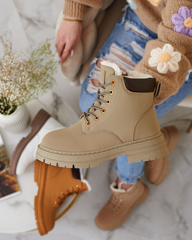 Resti Beige women's boots on a solid sole Eferope