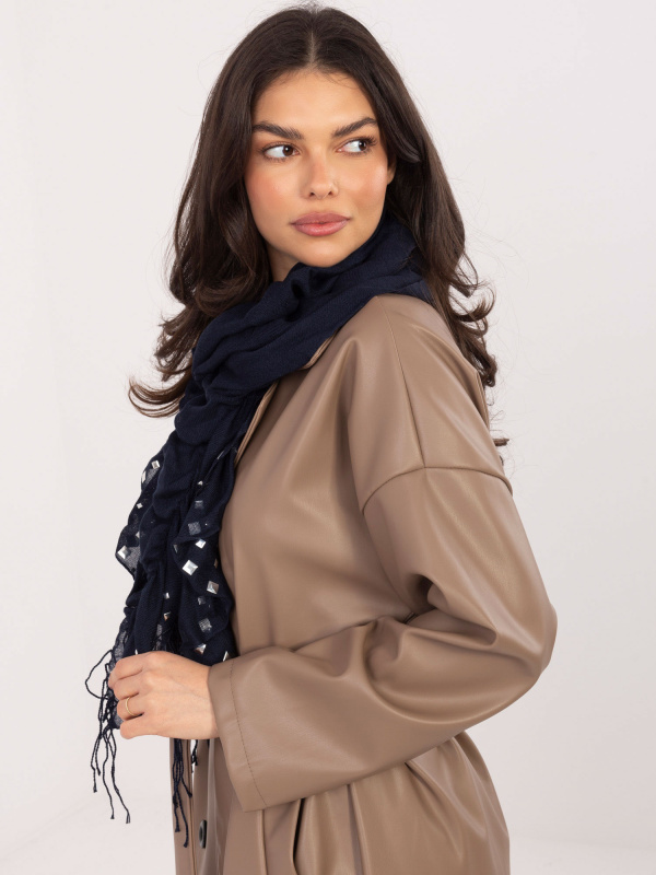 Tmavě modrá šála s ozdobami