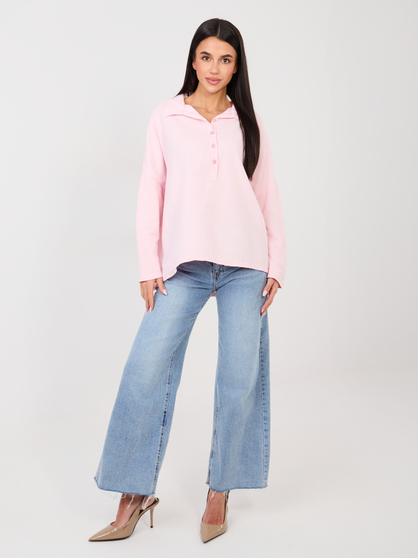 Světle růžová halenka s dlouhým rukávem