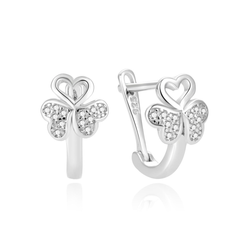 Beneto Třpytivé stříbrné náušnice se zirkony pro štěstí AGUC2159L
