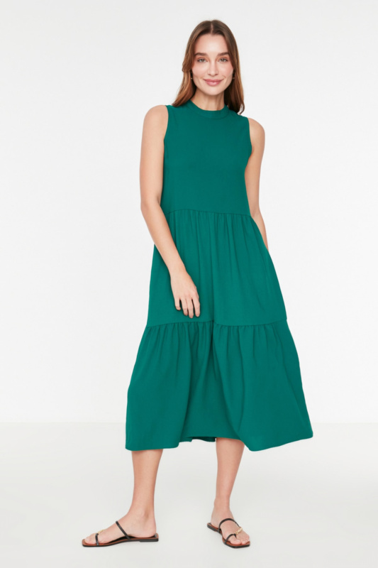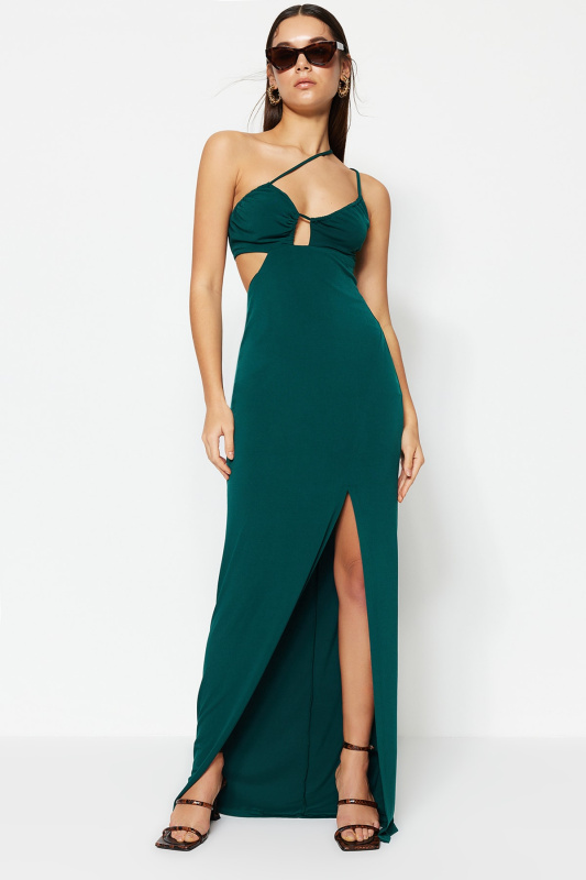Trendyol Smaragdově lemovaná pletená trubka Dlouhé večerní večerní šaty