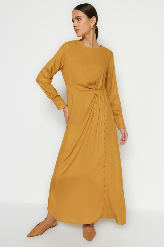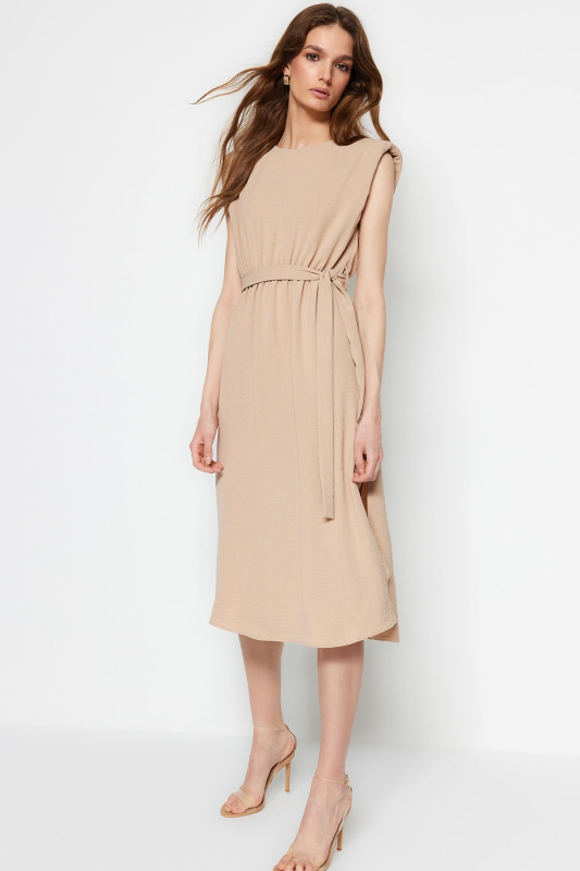 Trendyol kamenné opásané midi tkané vycpávkové tkané šaty