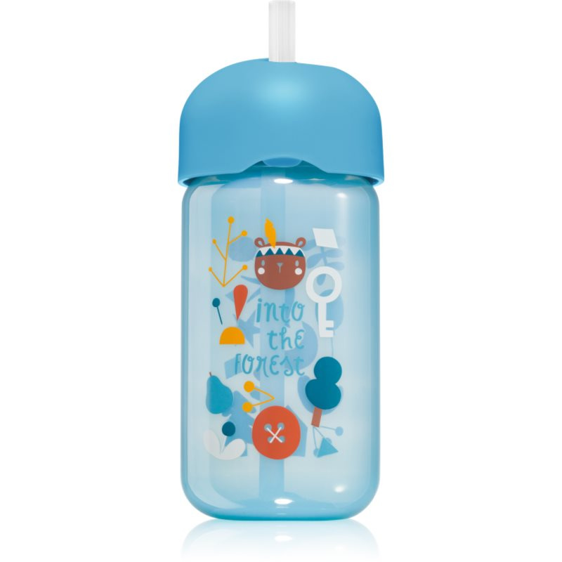 Suavinex Forest Straw Trainer Cup dětská láhev s brčkem 18 m+ Blue 340 ml