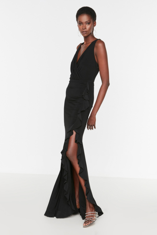 Trendyol antracit otevřený pas / bruslař lemovaný lesklý elegantní večer šaty