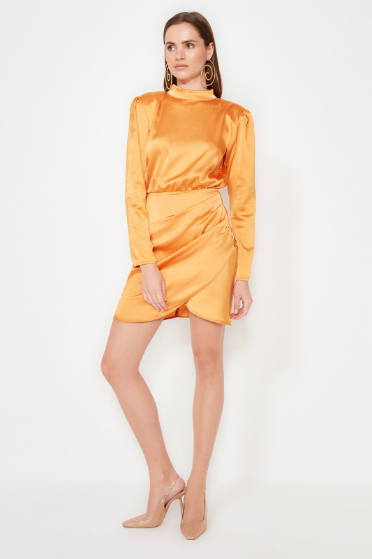 Trendyol Orange Printed Midi Wide Bow Border Pattern Detail Woven Dress Woven Dress
