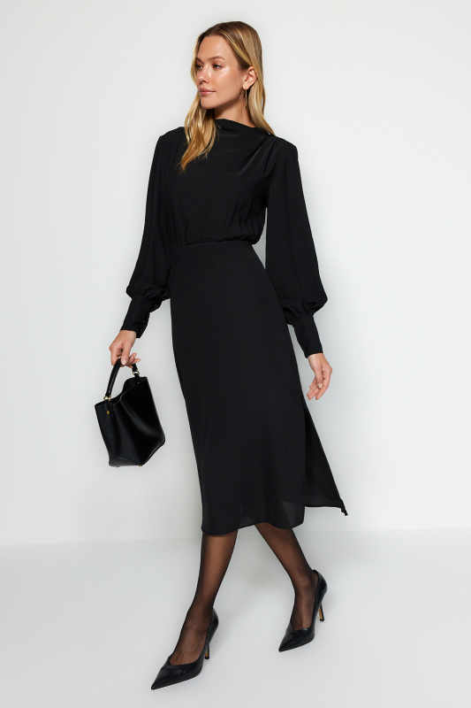 Trendyol Black Bodycon Tulle Knit Dress