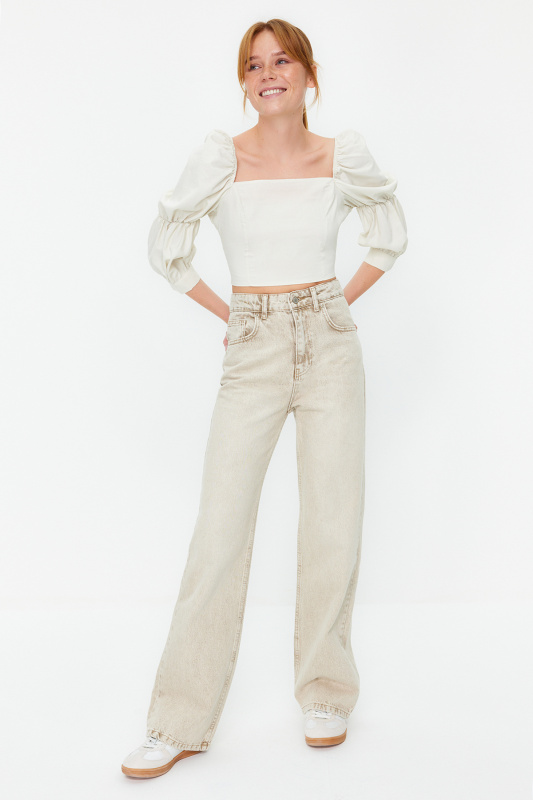 Trendyol Ecru Premium Wide Leg/Wide Leg Woven Trousers