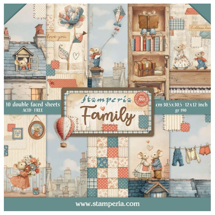 Sada oboustranných papírů 30 × 30 cm Family (10 ks)
