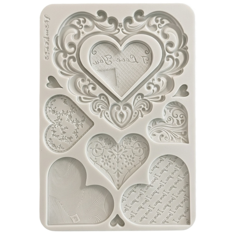 Silikonová forma na odlévání A5 - srdíčka zdobená