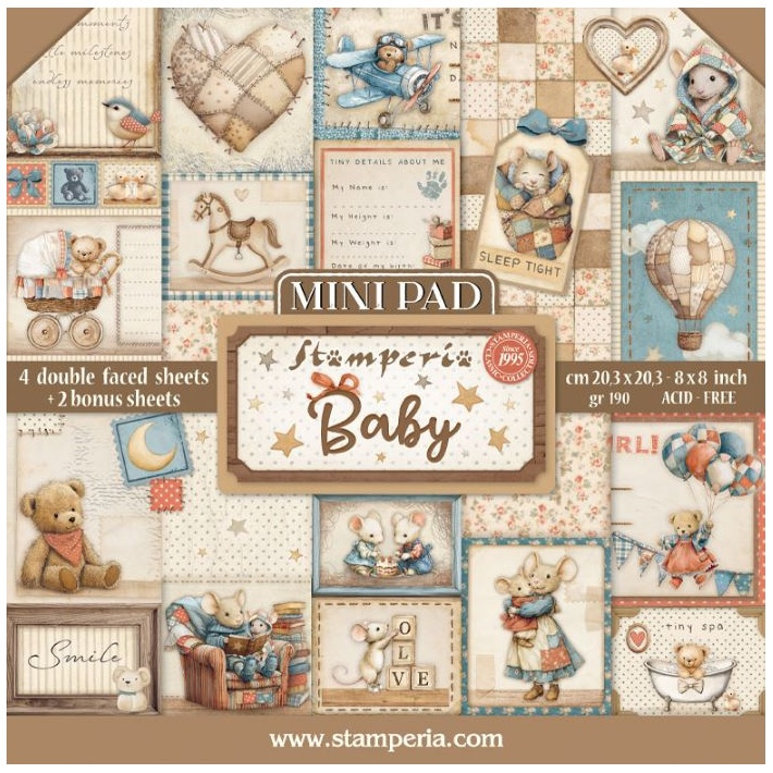 Sada oboustranných papírů 20 × 20 cm Baby (4 ks)